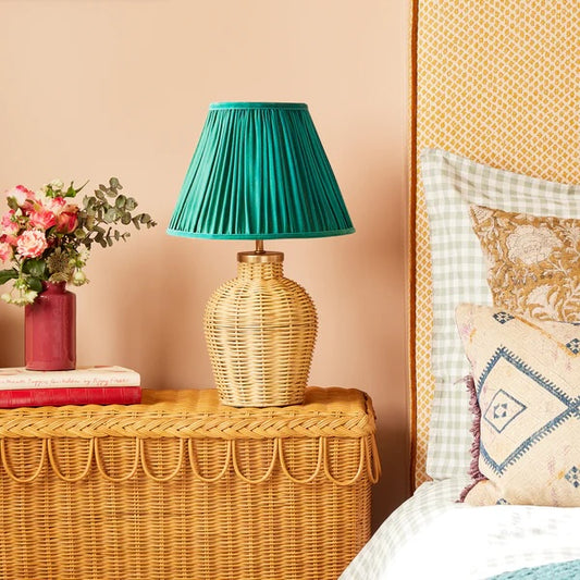 SMALLER RATTLE CORDLESS TABLE LAMP WITH SCALLOPED EMPIRE SHADE